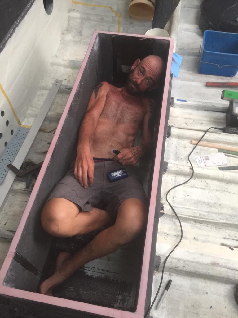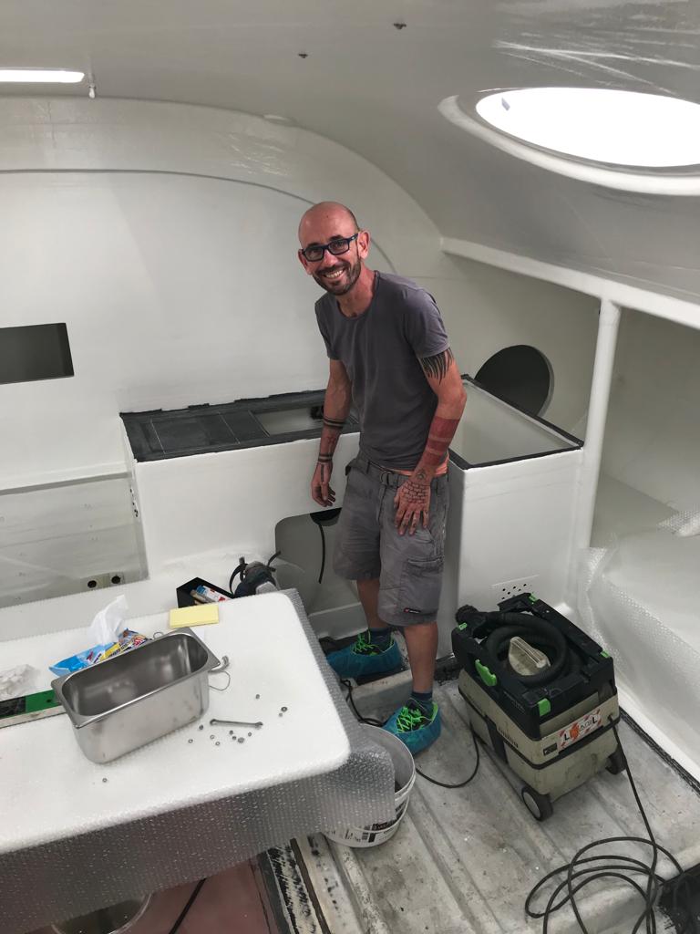 We focused on creating a decent galley, navigation station, battery box, area for hydraulics and electronics, a place to sleep, and a head.